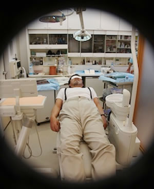長谷の澁谷歯科医院でインプラントの手術をしていただいた。いつも、私の手入れのひどい歯の面倒をみてくれているのは、ご主人だけど、インプラントの手術担当は奥様。インプラントも手術、まずは目に多いをしてもらって、その後手術用のクロスで上半身を多い、口の部分だけがあいた状態になる。治療台に横たわった私。