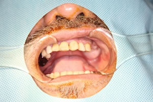 このむかって右上の左の上顎が手術のターゲット。